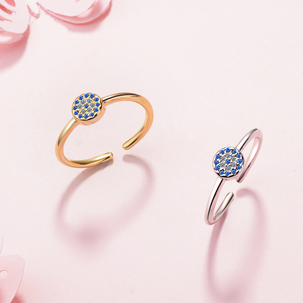 Turkish Evil Eye Ring Retro Circle Blue Eye Jewelry Copper Plated Platinum And Gold Adjustable Opening Band For Women