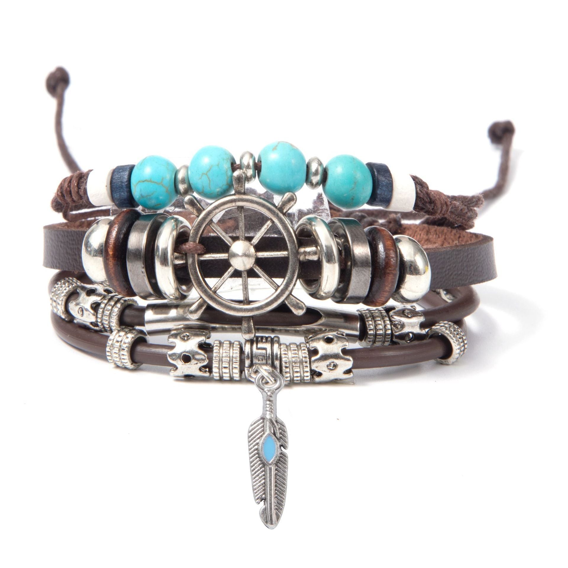 Mens Woven Leather Bracelet With Wooden Beads Plain Jewelry Gift For Him Individually Packed Wristband For Men