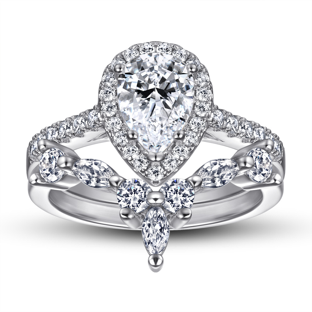 Geometric Ring for Women Silver Vee Shaped Ring Simulated Diamond Wedding Rings Design Rings European American