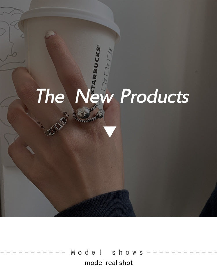 Womens Copper Chain Ball Index Finger Ring Vintage Adjustable Opening Geometric Hollow Design Jewelry Gift