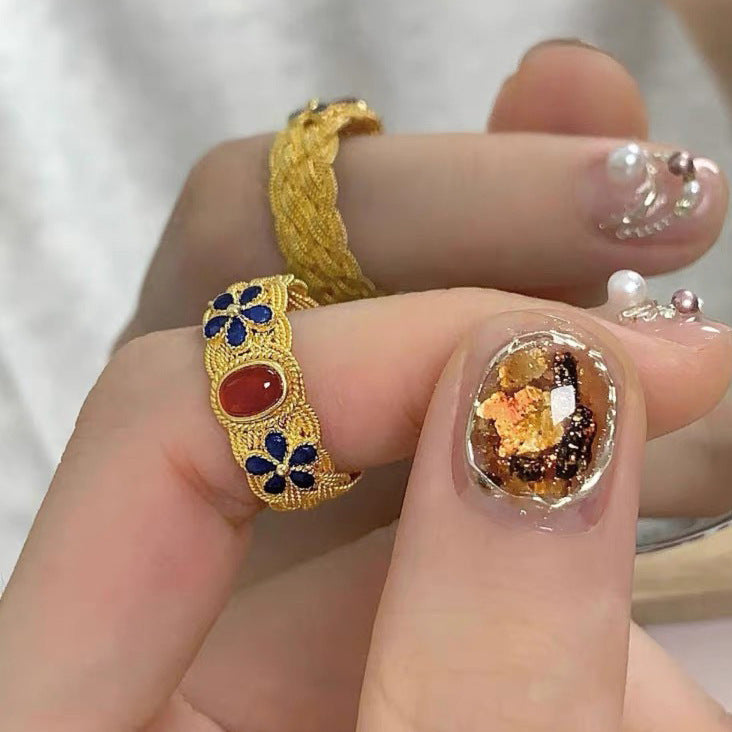 Copper Adjustable Ring Geometric Open Woven Design Yellow Gold Fashion Jewelry Gift Durable Everyday Statement