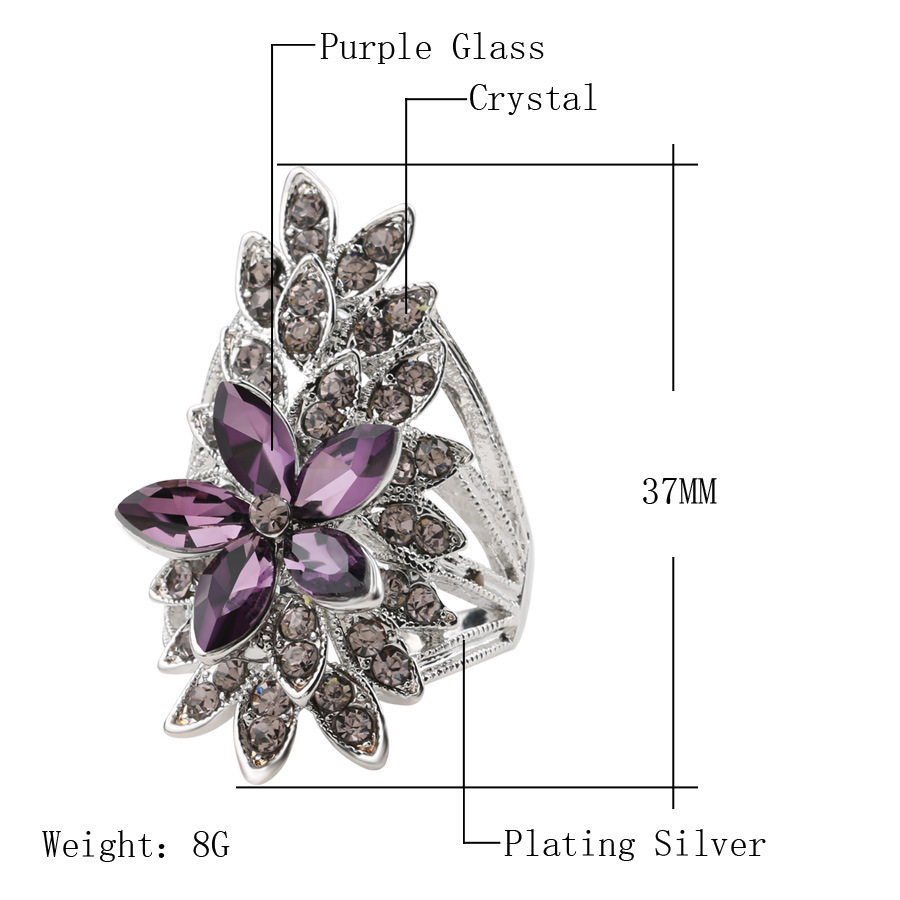 Vintage Crystal Flower Diamond Ring Exaggerated Index Finger Jewelry For Women Fashion Statement Accessory Now