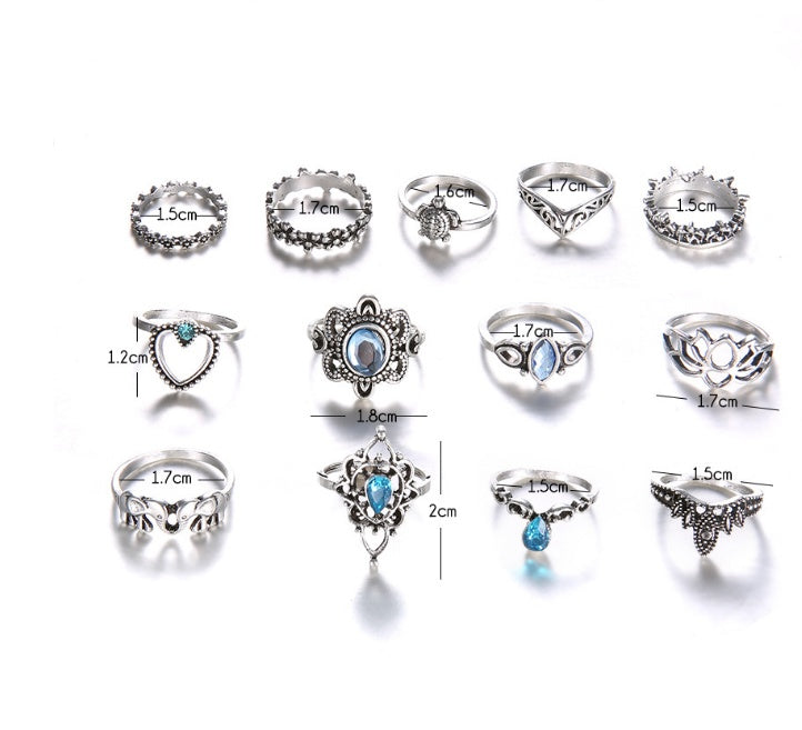 Vintage Crown Starry Gem Jewelry Set 13 Piece Alloy Gemstones Individually Packed Birthday Gift For Her Europe