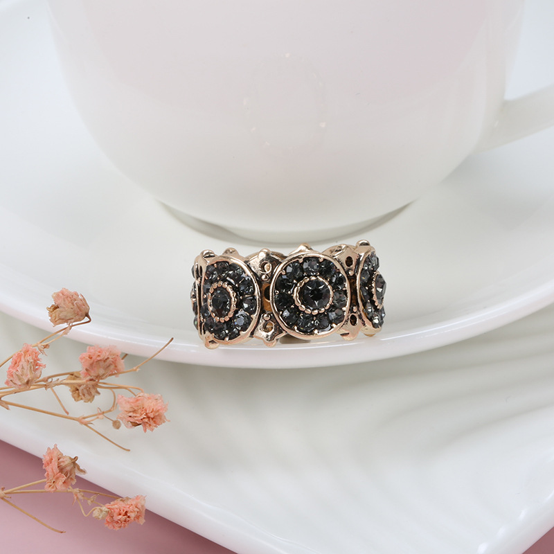 Womens Bohemian Geometric Ring In Antique Gold Plated Alloy With Inlaid Gemstones Vintage Electroplated Sparkle Finish