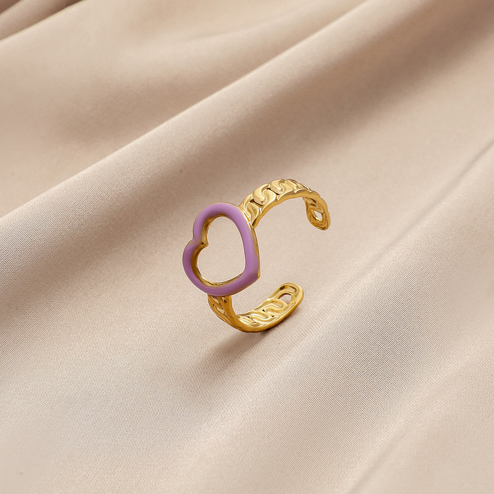 Vintage Fashion Stainless Steel Drip Oil Love Ring For Women Gold Tone Jewelry Accessory Wear For Daily Styles