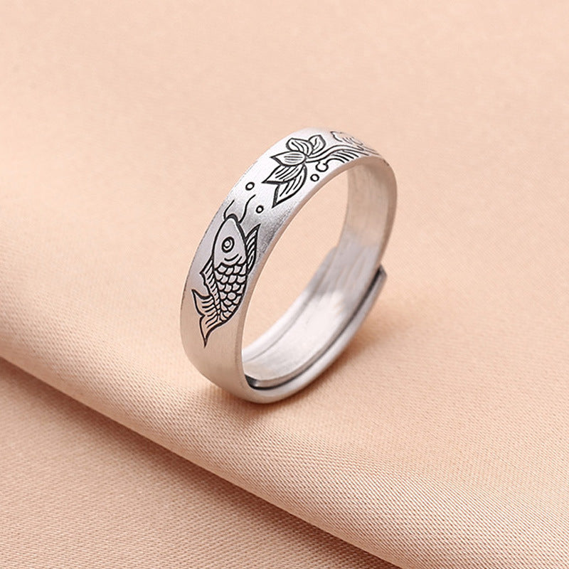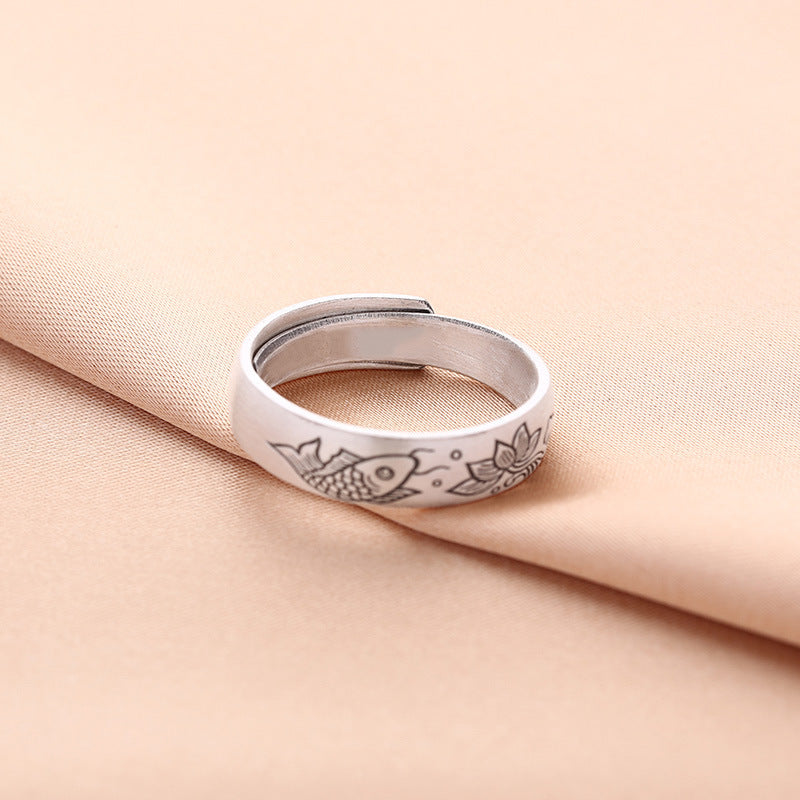 Unisex Carp Ring Vintage Copper Lotus Adjustable Open Band Geometric Jewelry Statement Ring Handcrafted Design