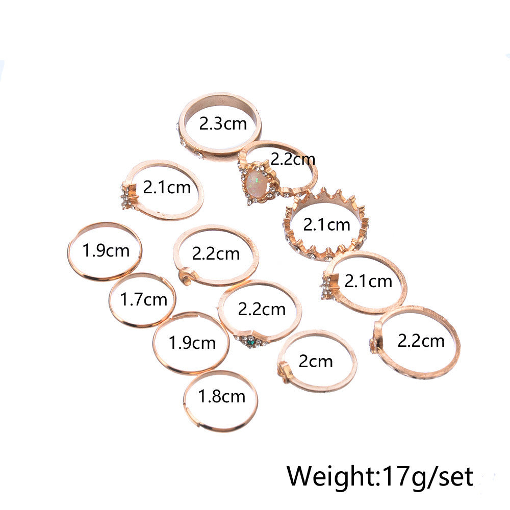 Womens Ring Set Vintage Crown Star Moon Design High Quality Alloy Jewelry Diamond Geometric European Americana
