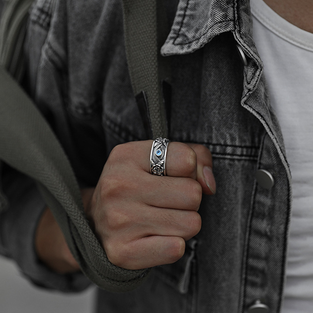 Mens Copper Ring Geometric Demon Skull Ring Adjustable Opening Punk Rock Locomotives Ring Hip Hop Ring For Men