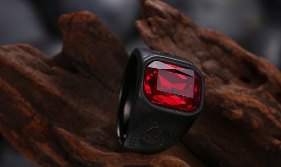 Vintage Red Stone Black Ring For Men Women Punk Gothic Style Male Finger Jewelry Gift Wholesale
