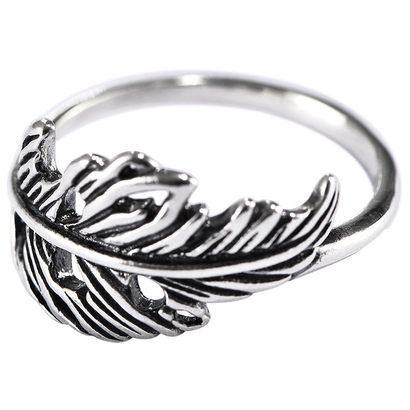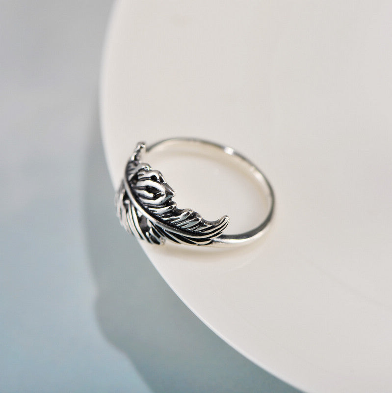 Vintage Thai Feather Ring Hollow Leaf Design Lightweight 925 Sterling Silver Closed Mouth Jewelry Gift For Everyday Use