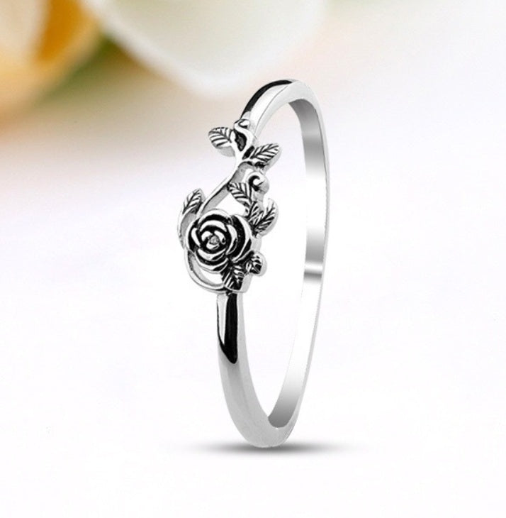 Vintage Rose Ring Sterling Silver Copper Plated Flower Gem Ring For Her Wedding Gift Jewelry For All Occasions