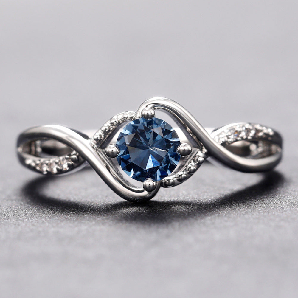 Womens Copper Wave Ring Geometric Inlaid Zircon Fashion Jewelry Statement Ring Elegant Accessories 6 7 8 9 10