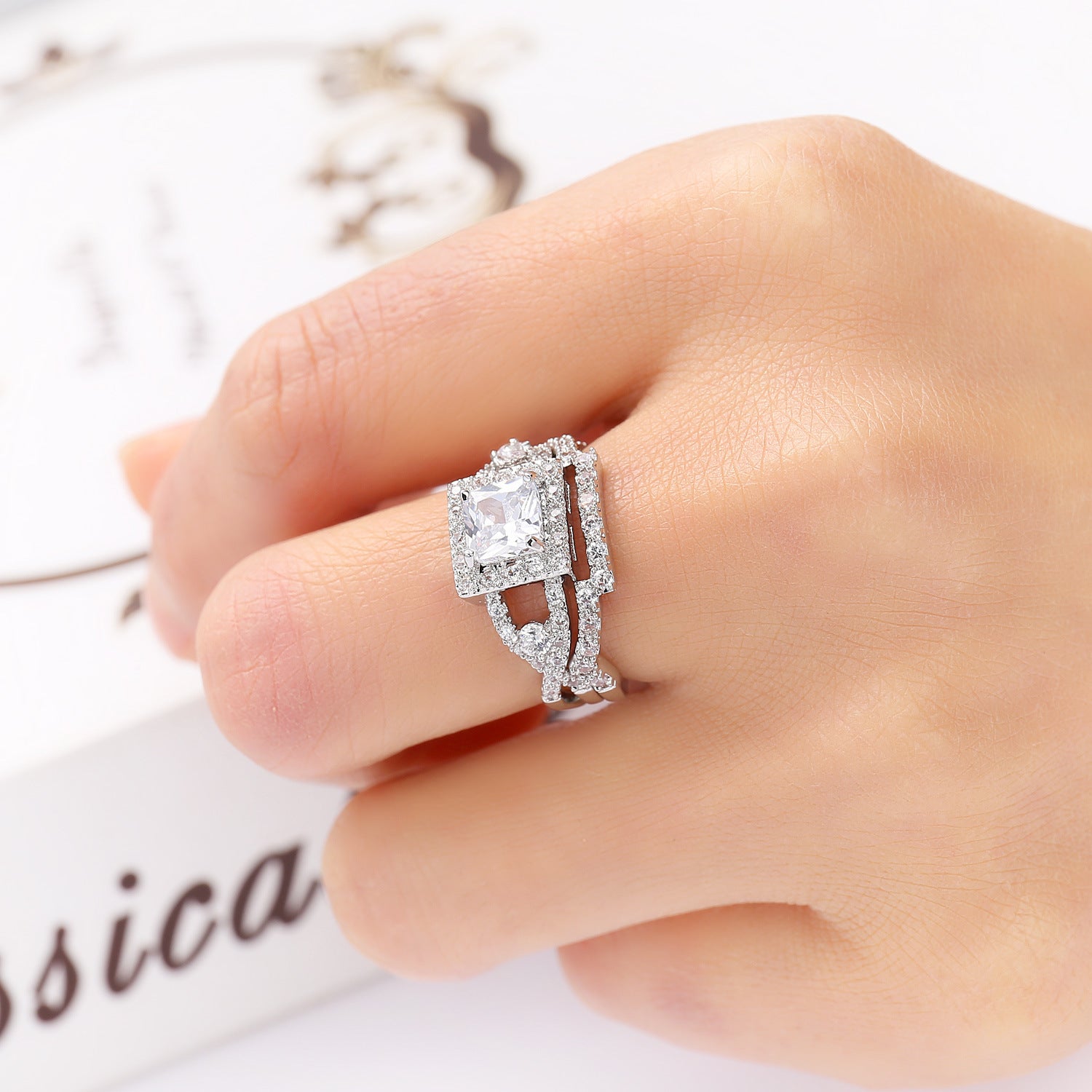 Copper White Zircon Couple Ring Electroplated Mosaic Jewelry For Lovers Unisex Europe Style Elegant Design Gift