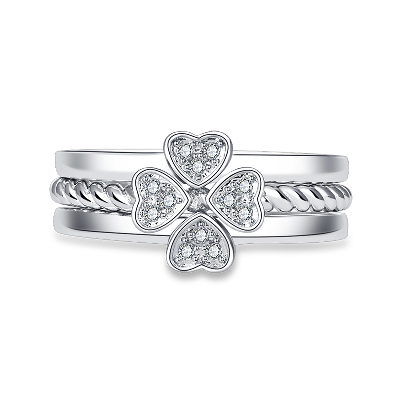 Womens Three Ring Set Four Leaf Clover Gold Plated Inlaid Gemstones Fashion Jewelry Accessory Elegant Gift For Women