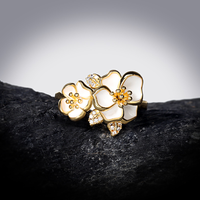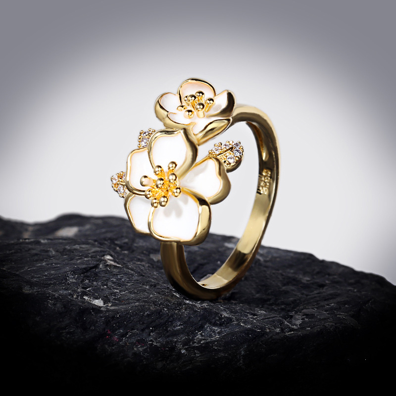 Women's All Match Fashion Small Daisy Ring Brass and Electric White Steel European Style Geometric In Gemstone Size