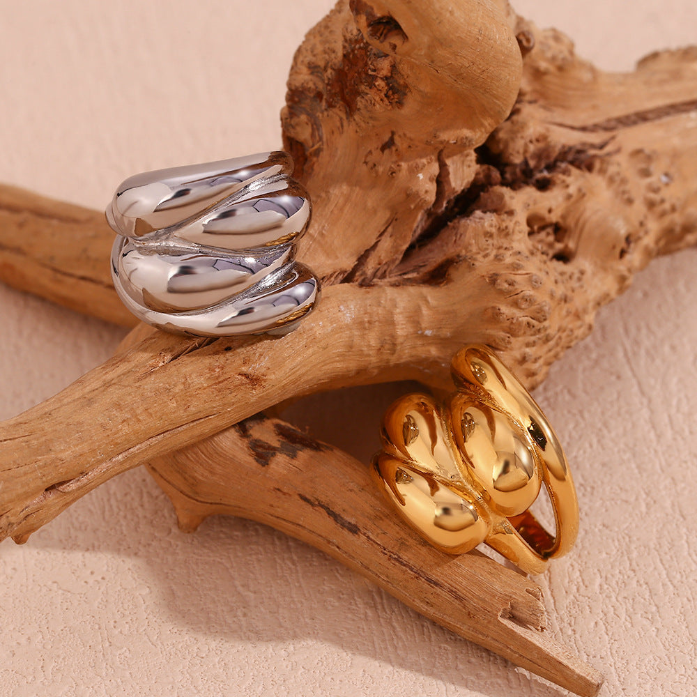 Women's Auchan Niche Creative Stainless Steel 18K Gold Plated Water Drop Wave Staggered Dome Ring