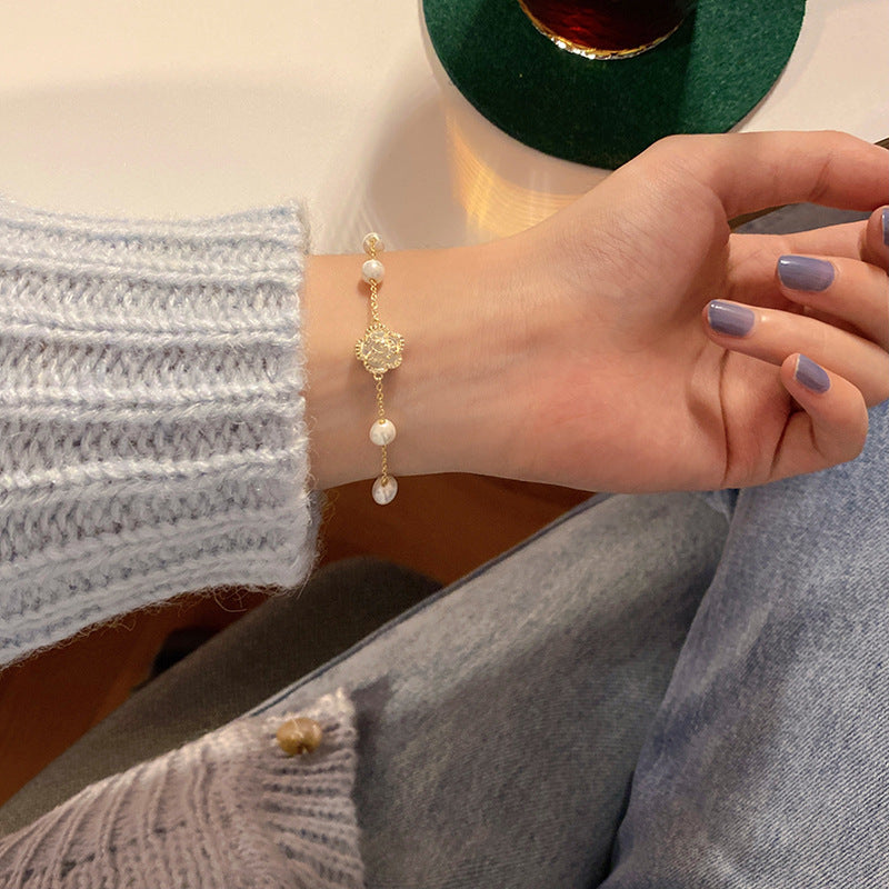 Womens Flower Bracelet Alloy Electroplated Camellia With Pearls Delicate Fashion Jewelry For Elegant Occasions