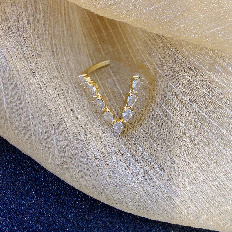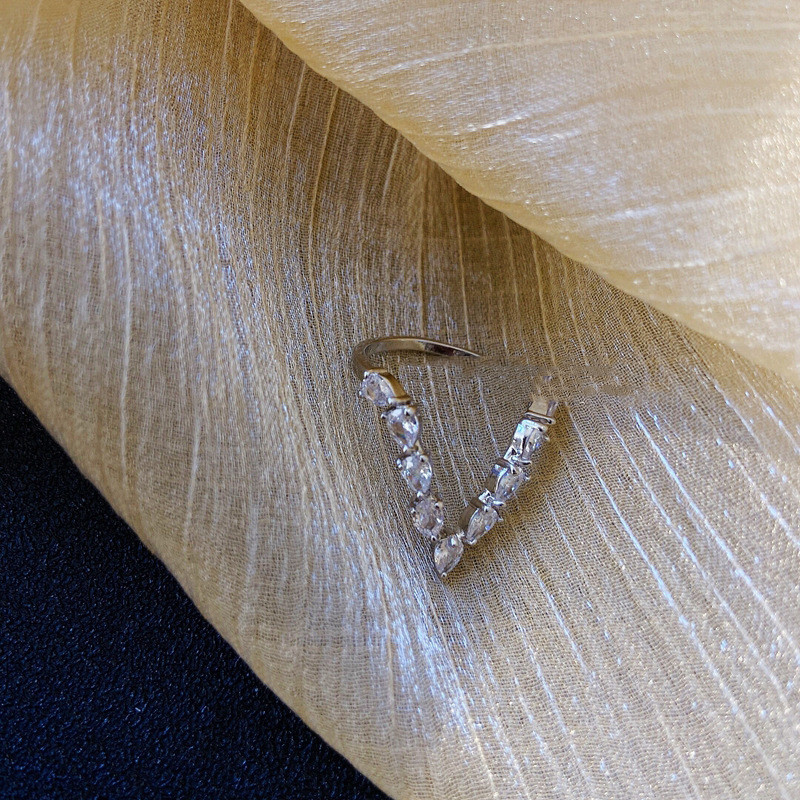 Womens Charm Ring Set V Shaped Zircons Gold Silver Trio
