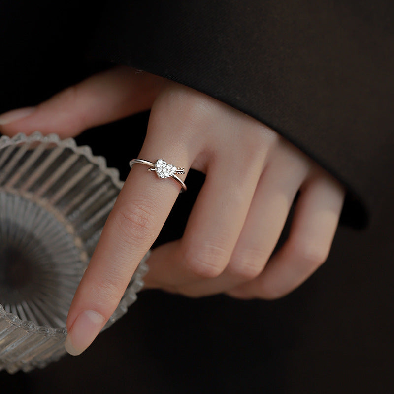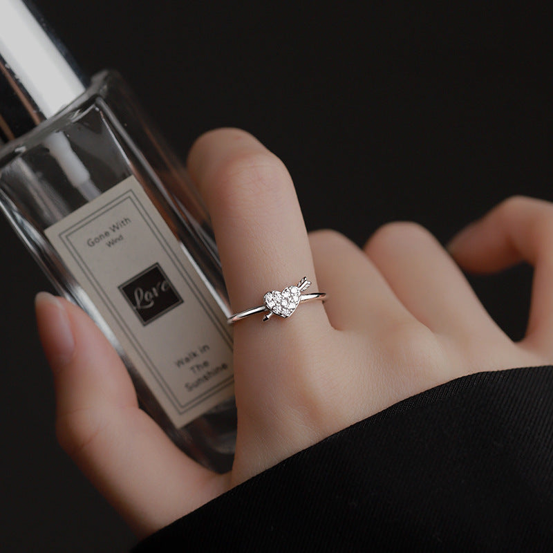 Womens Adjustable Open Ring With Love Heart Inlaid Zircon Gemstone Korean Design Anniversary Gift To Her White