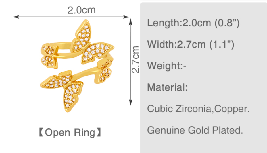 Fashion Jewelry Butterfly Diamond Ring For Women Sparkle