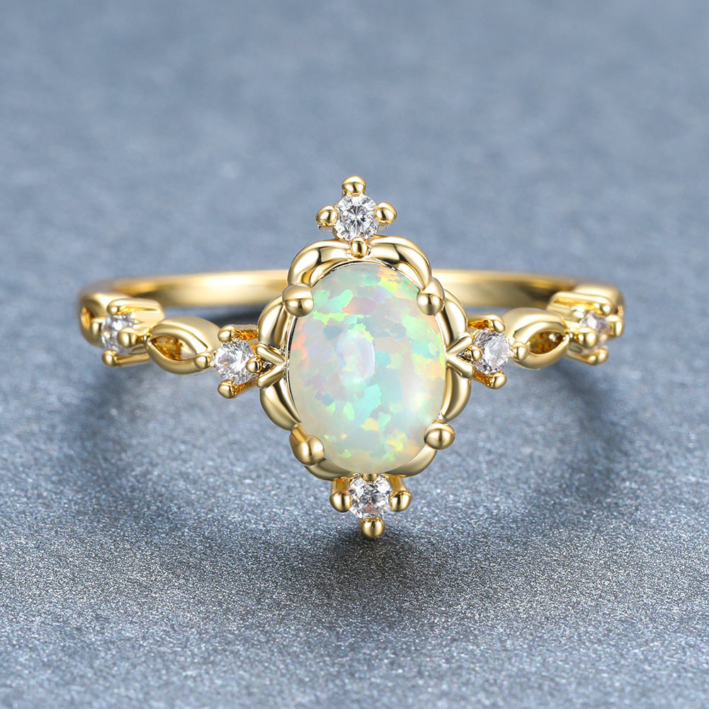 Womens Fashion Micro Rhinestone Four Corner Oval Ring Gold White Electroplated Copper Size 6 7 8 9 10 Elegance