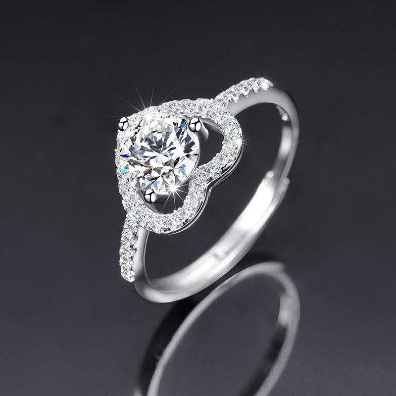 Womens Adjustable Ring S925 Silver Moissanite Love Heart Ring With Diamond And Zirconia Gifts For Her Employee