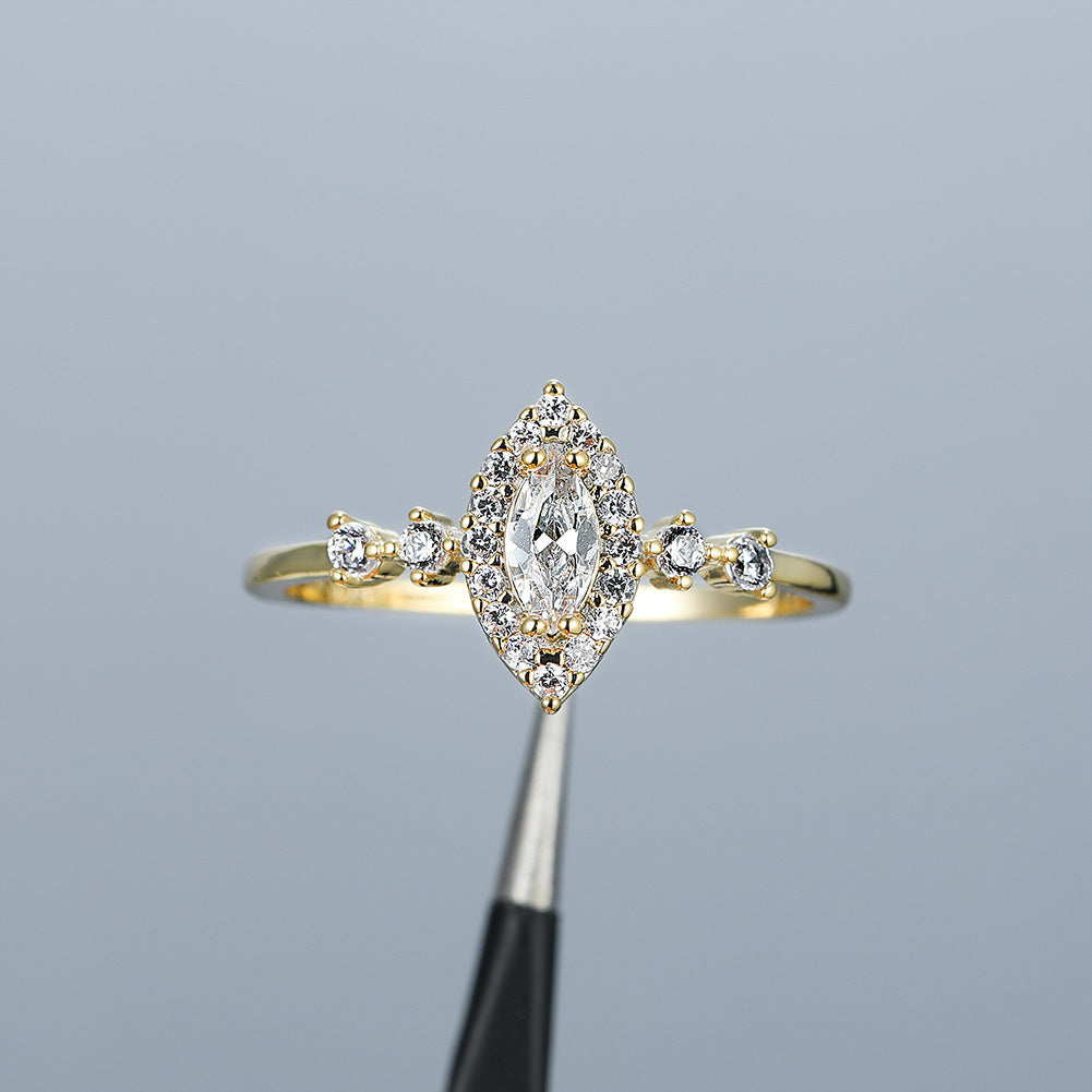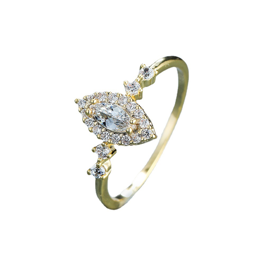 Women's Fashion Simple All Match Zircon Inlay Index Finger Ring Copper Gold Tone Sizes 6 7 8 9 10 Classy Style