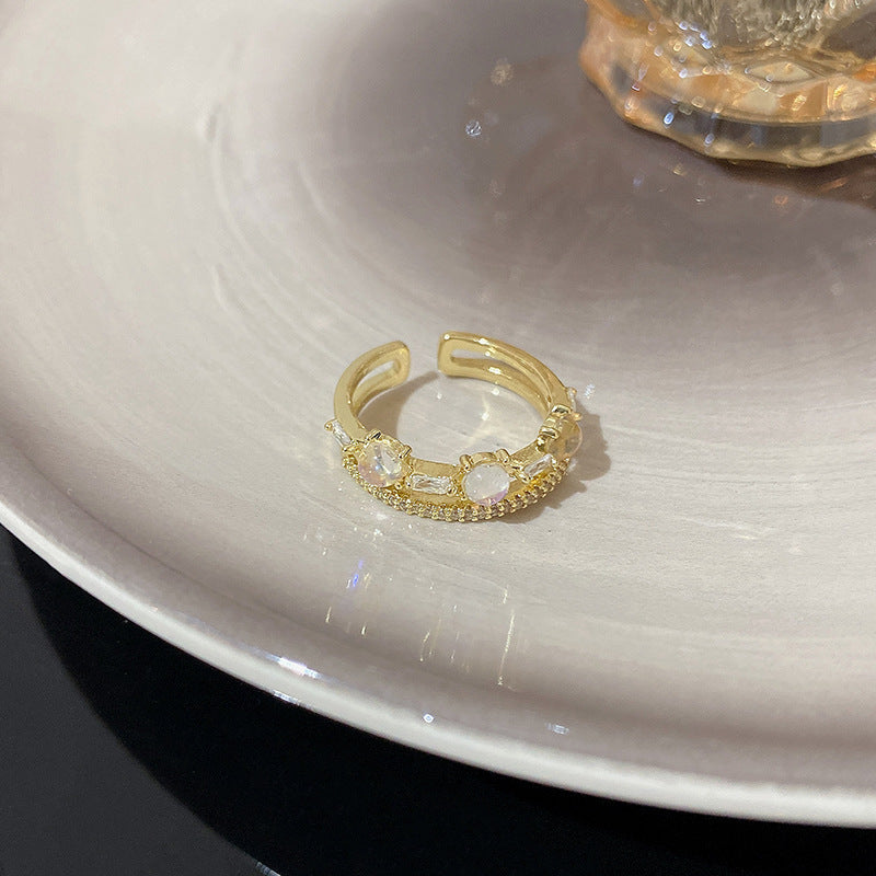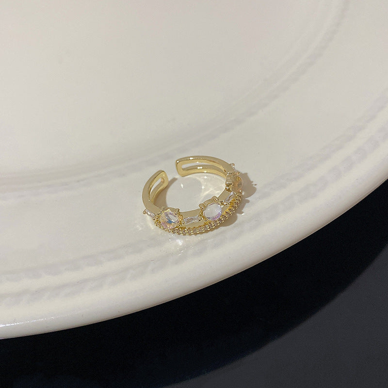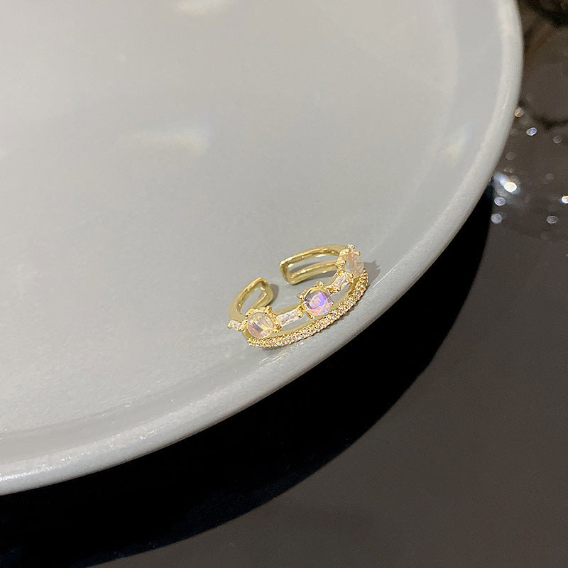 Adjustable Moonstone Ring Gold Electroplated Copper Geometric Style Womens Fashion Ring For Her Everyday Access
