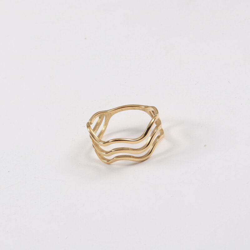 Women Fashion Triple Curved One Piece Ring Titanium Steel Gold Electroplated Jewelry For Modern Everyday Looks