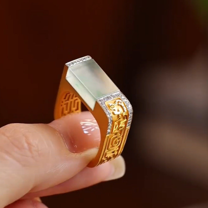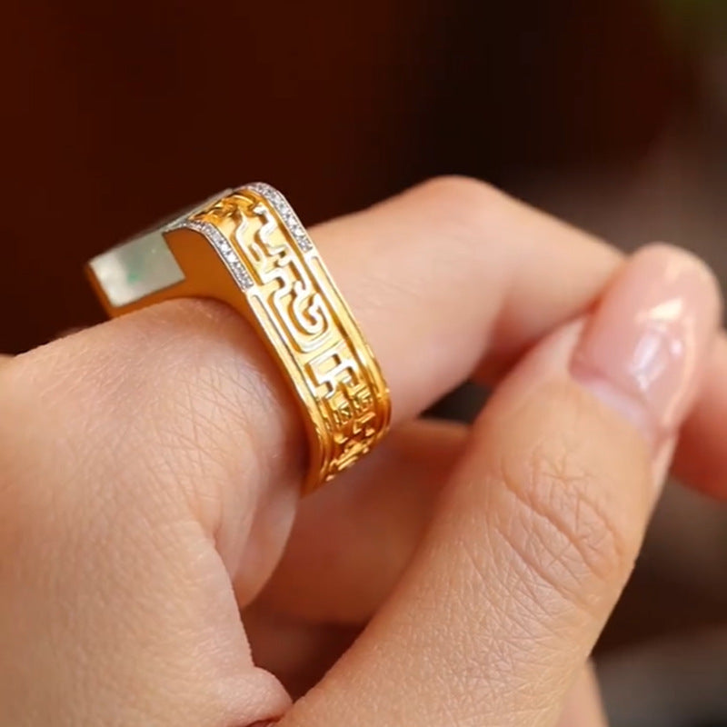 Unisex Square Ring Retro Alloy Jasper Ring Vintage Style British Seal Ring Gift For Men Women US Size 7 9 Classic Look