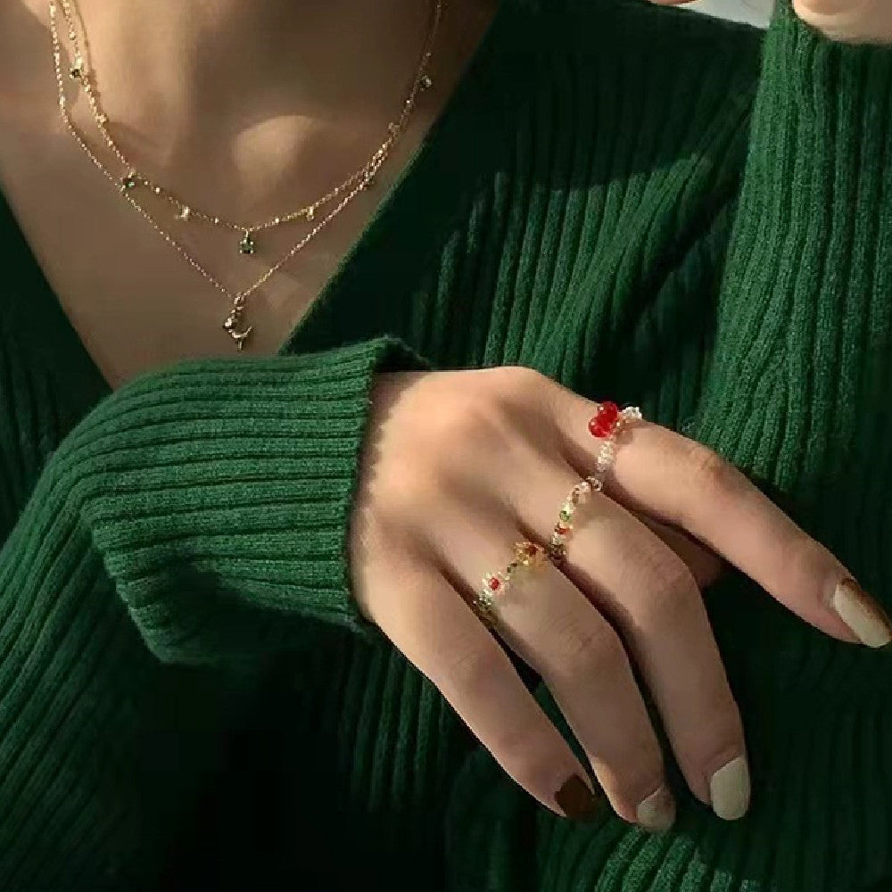 Beaded Ring Set Rice Bead Flower Jewelry Cherry Pearl Flower Design For Women And Girls Fashion Ring Accessory