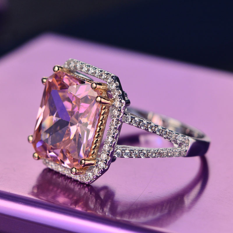 Womens Large Square Ring AAA Zircon Inlaid White Gold Plated Copper Band Geometric Shape American Wedding Ring