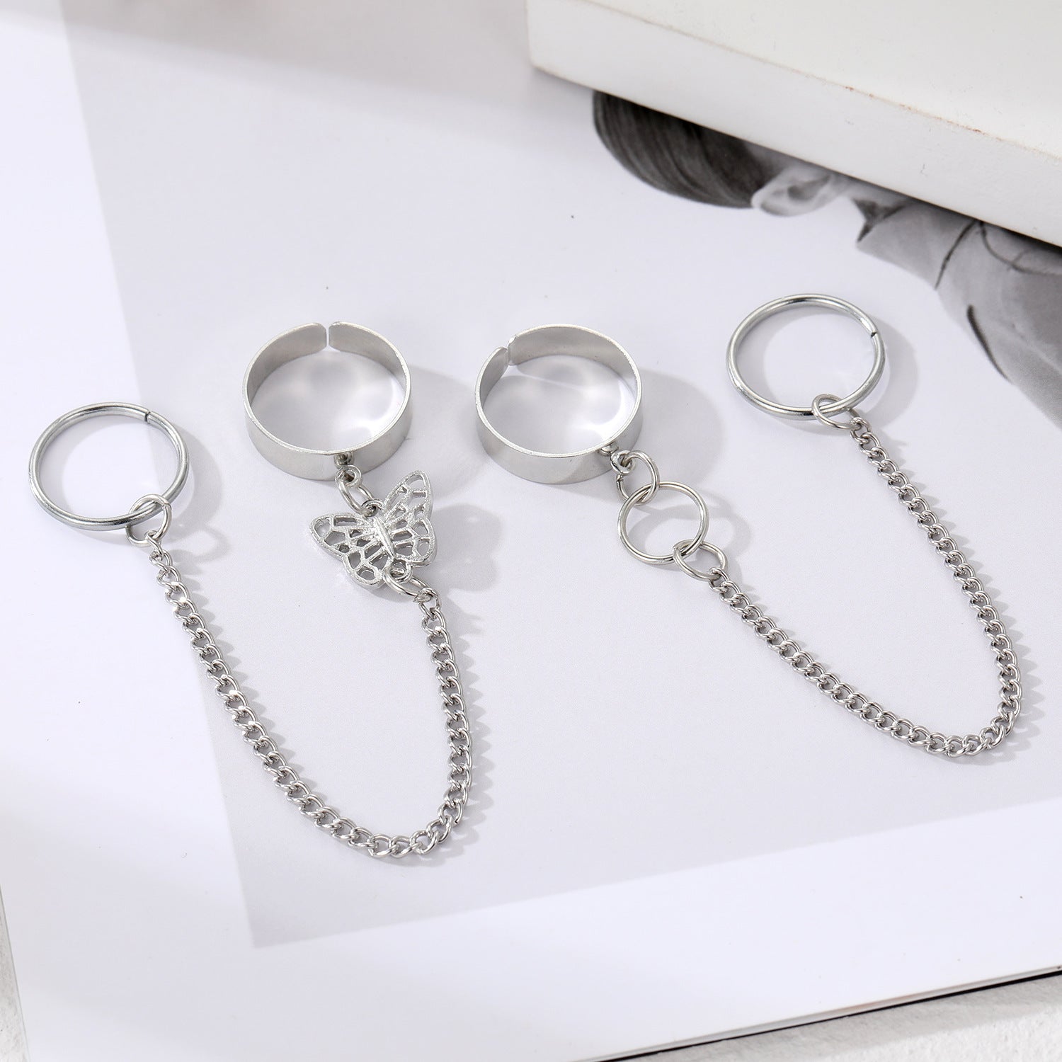 Adjustable Butterfly Chain Ring for Women Men Open Heart Geometric Alloy Electroplated Unisex Ring Trendy Look