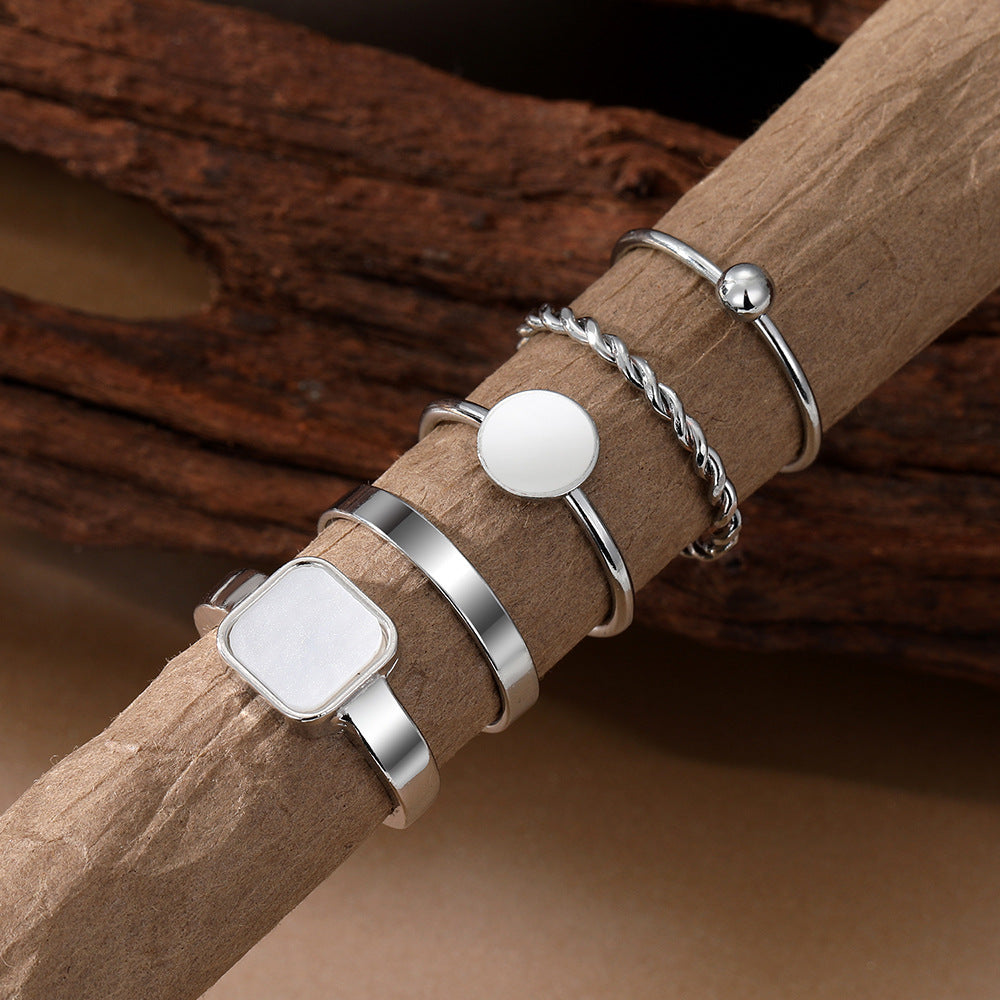 Women's Geometric Alloy Ring Set Stackable Rings Electroplated Quadrangle Design Five Piece Jewelry Collections