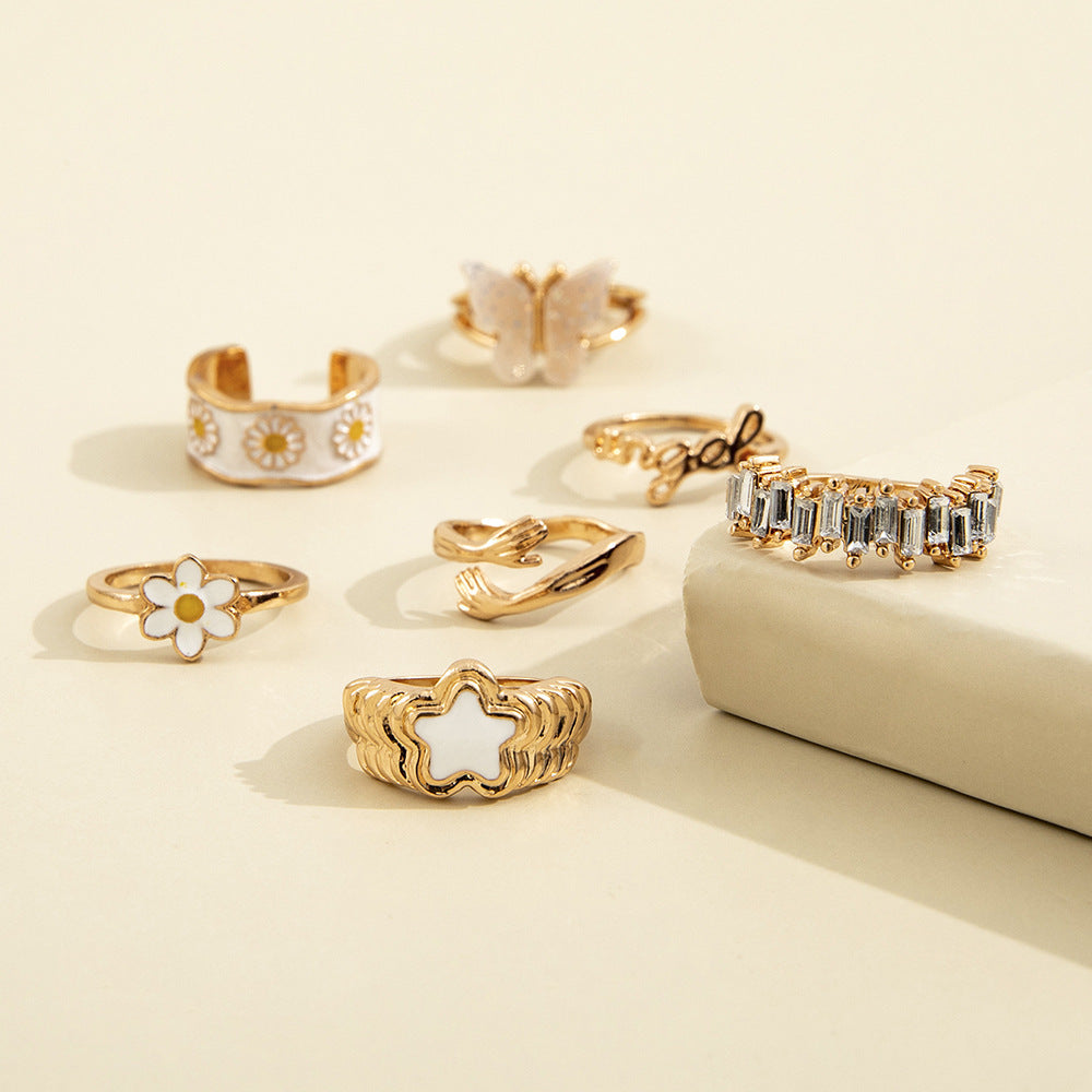 Womens Fashion Alloy Ring Set With Butterfly Stars And Letter Accents Cute Knuckle Rings Stacking Midi Rings 7