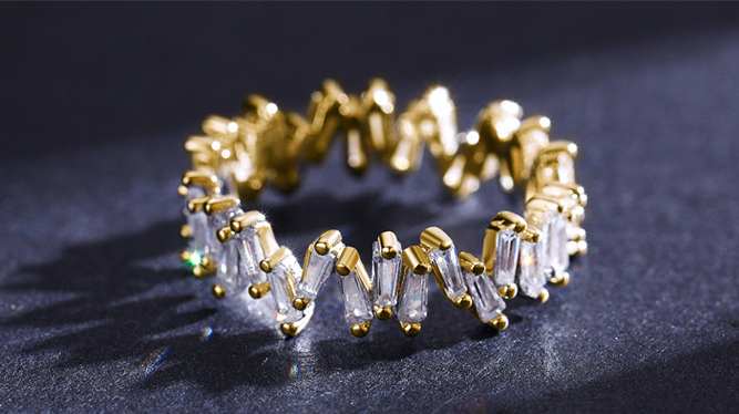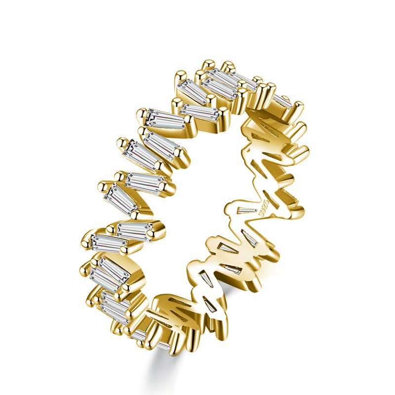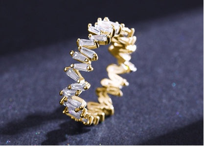 Sterling Silver Geometric Ring With Inlaid Gems 925 Silver Irregular Row Diamond Design Platinum Plated Gemset