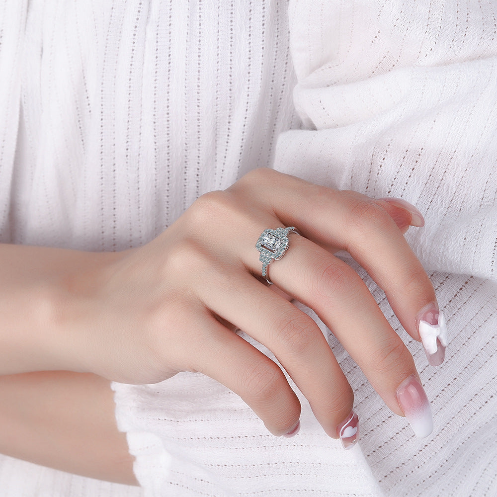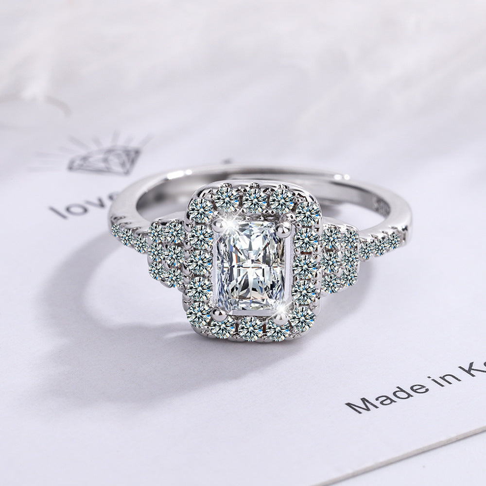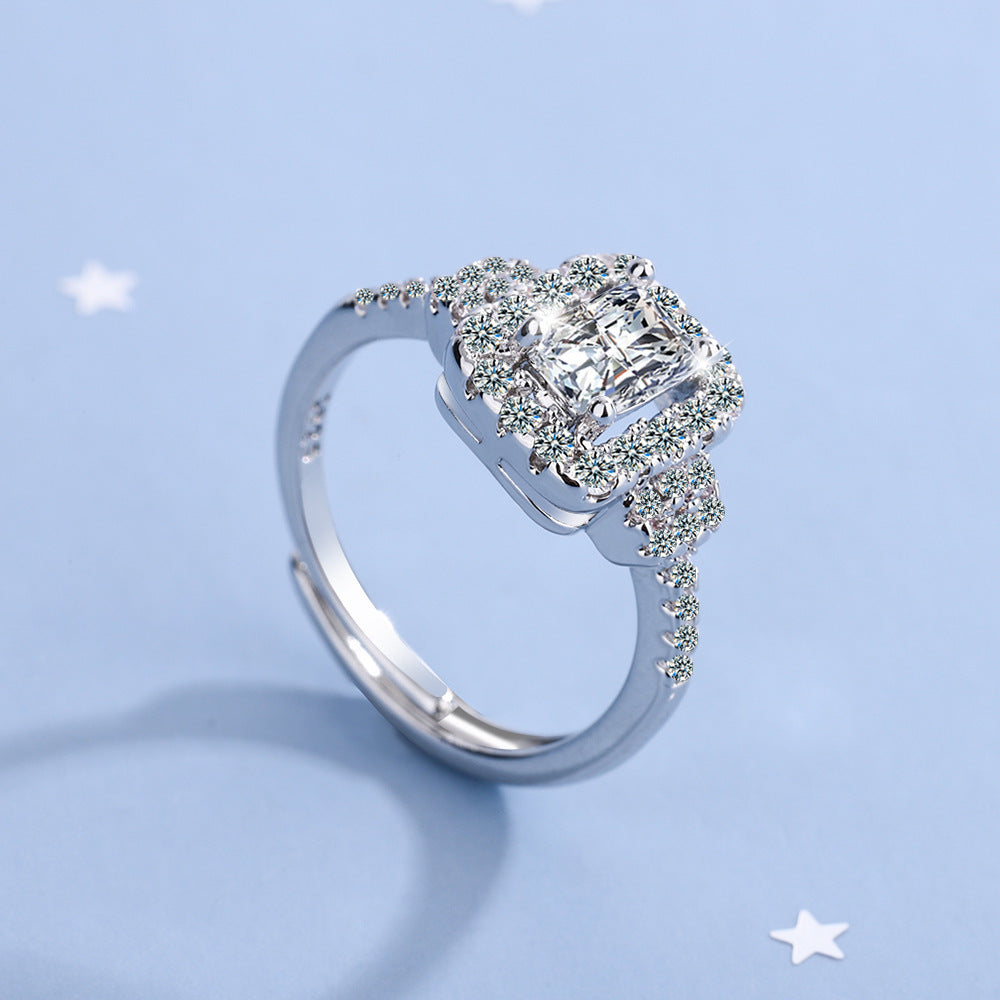 Womens Round Zirconium Diamond Wide Face Copper Ring Adjustable Size 12 To 17 Inner Diameter 16 Mm Geometric Design