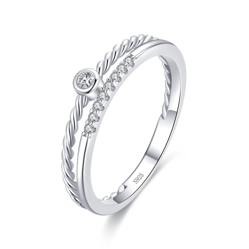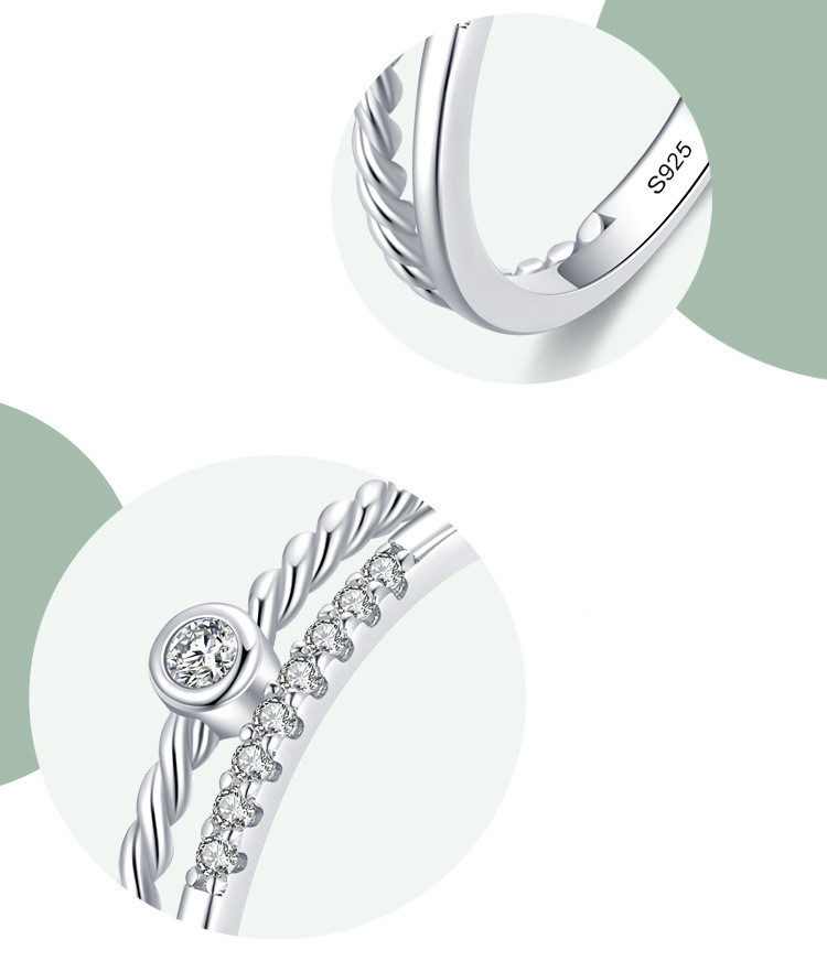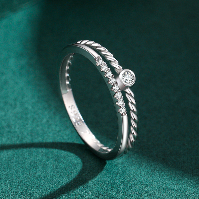 Womens Ring 925 Sterling Silver Gold Plated With Artificial Gemstones Double Twist Style Ring Size US5 6 7 8 9