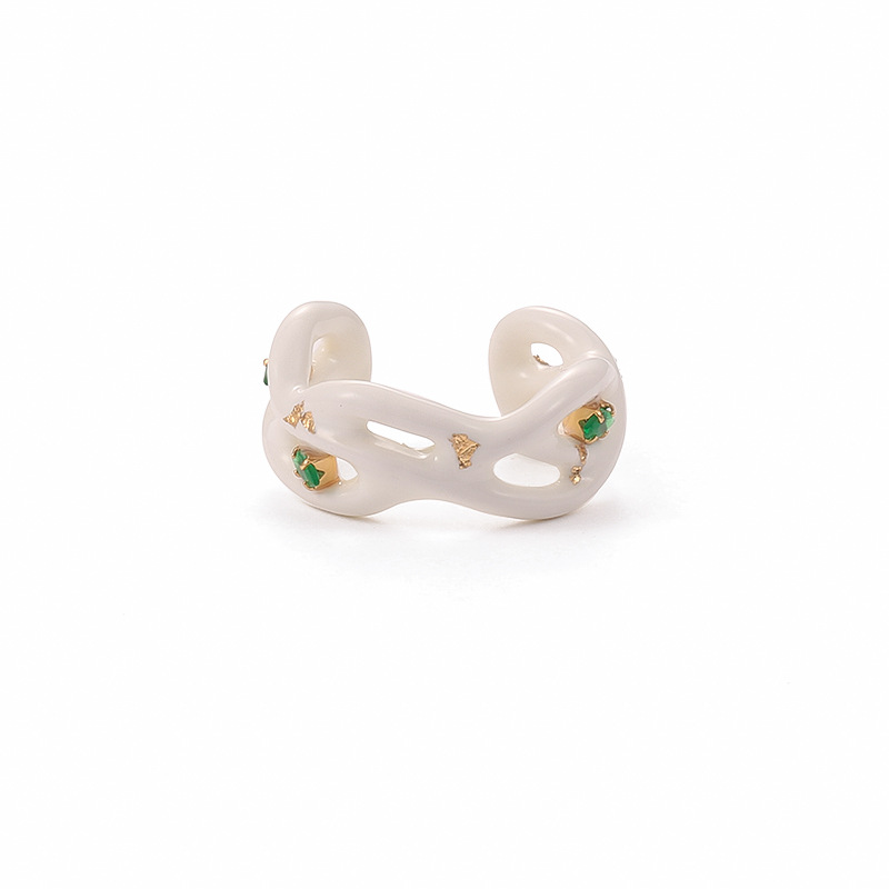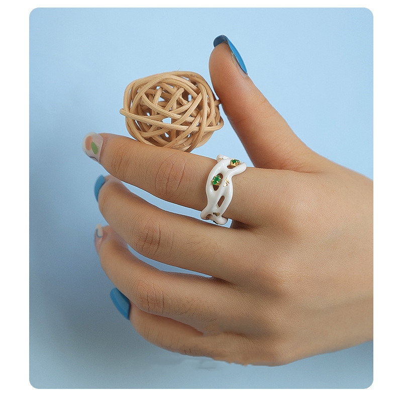 Womens Emerald Zircon Pure White Ring With Creative Design Alloy Band Size 7 Face Width About 11mm Luxury Feel