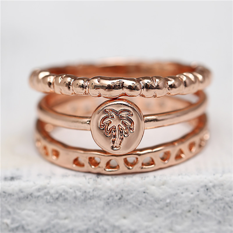 Three Piece Leaf Shaped Engagement Ring Set Alloy Finish