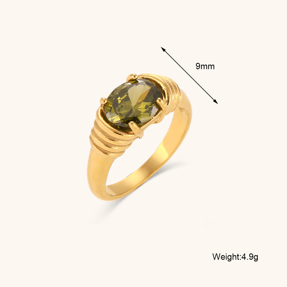 Womens Vintage Stainless Steel Ring Retro Geometric Oval Electroplated Fashion Ring Black European Style Bands