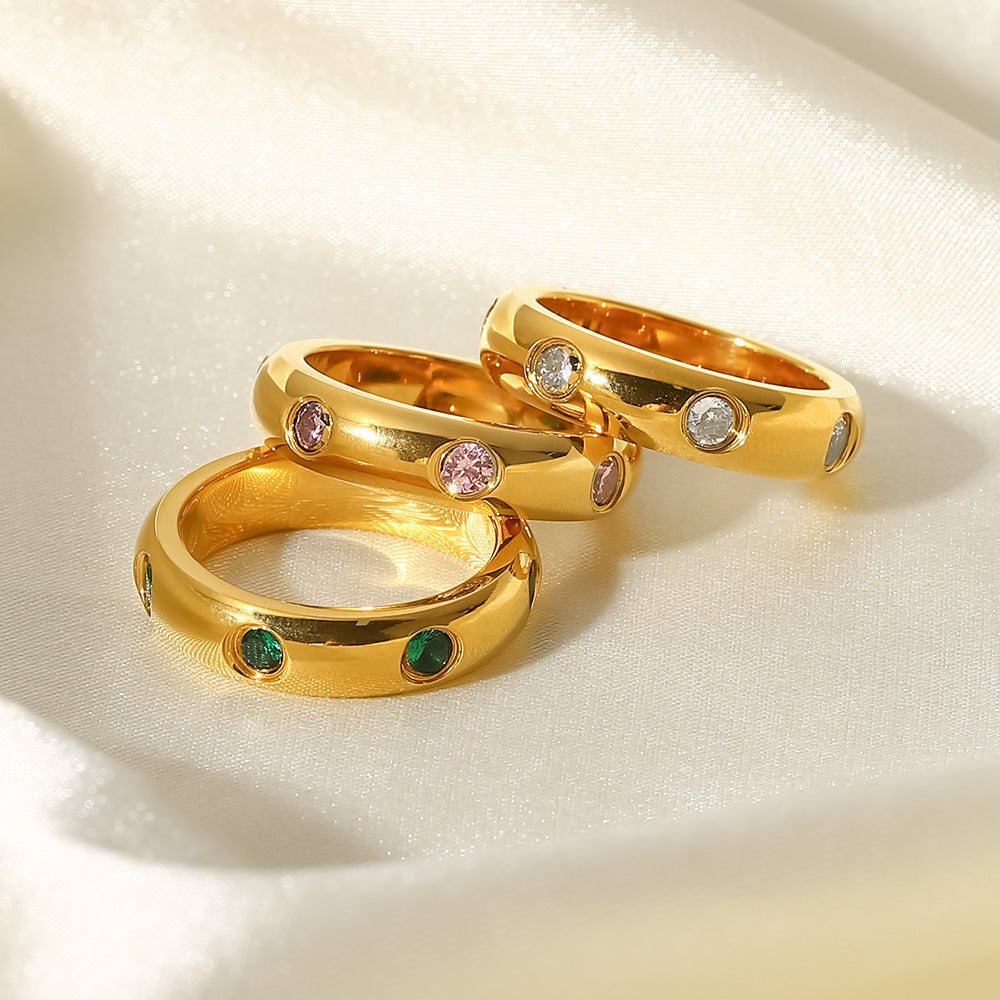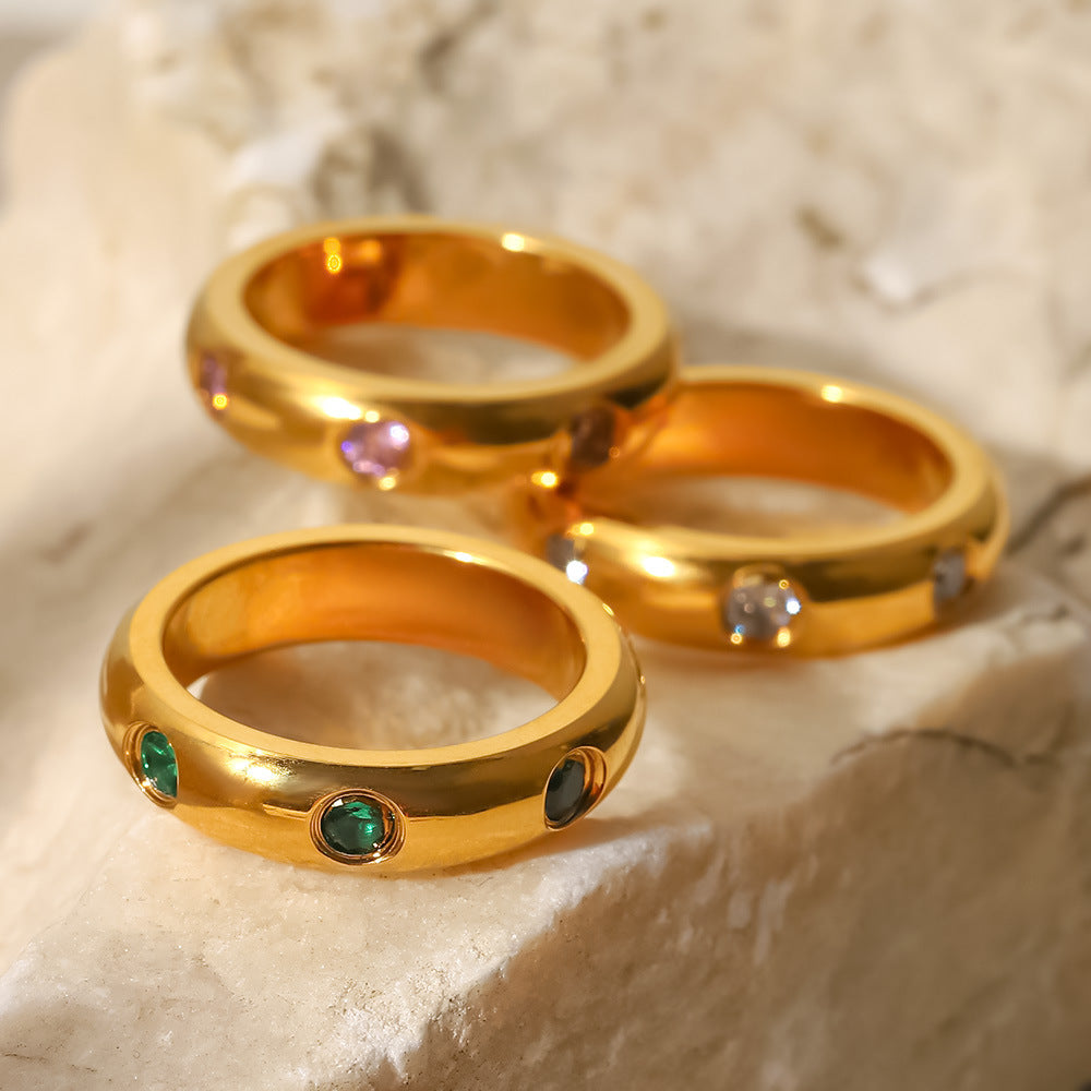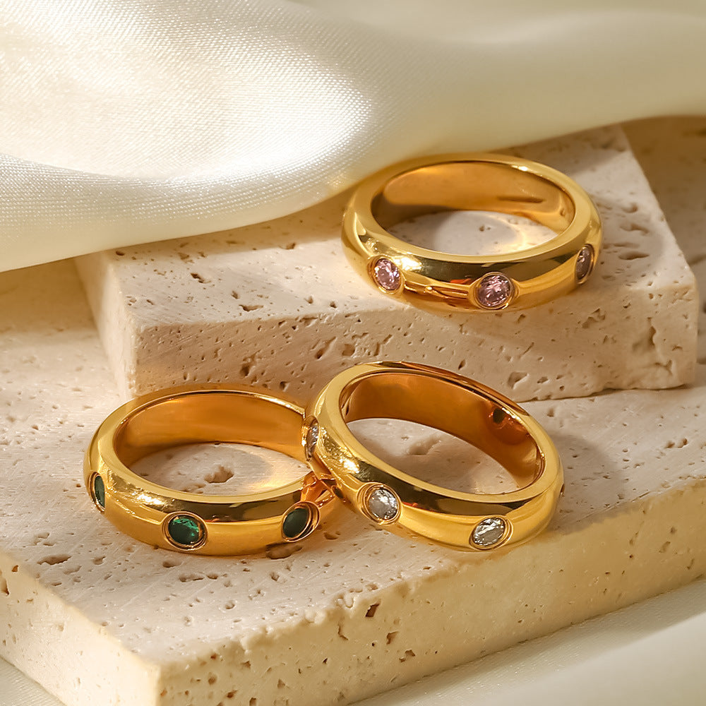 Womens Vintage Stainless Steel Ring With Zircon Gemstone Fashion Jewelry Geometric Ring Simple Design Ring For Women