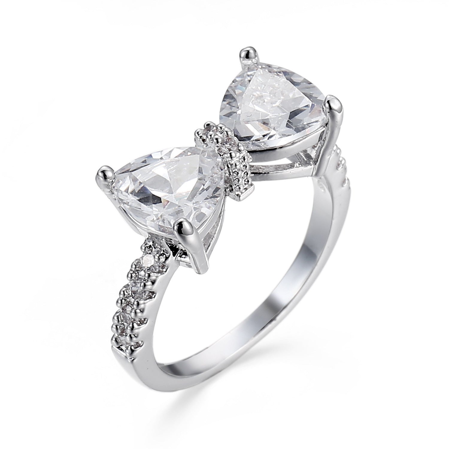Womens Zircon Bow Ring Copper Jewelry White Stone Inlaid Platinum White Gold Finish European American Style Elegant