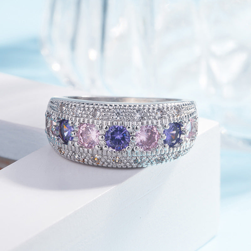 Zircon Color Diamond Copper Jewelry European American Style Geometric Design Electroplated Finish Fashion Shine