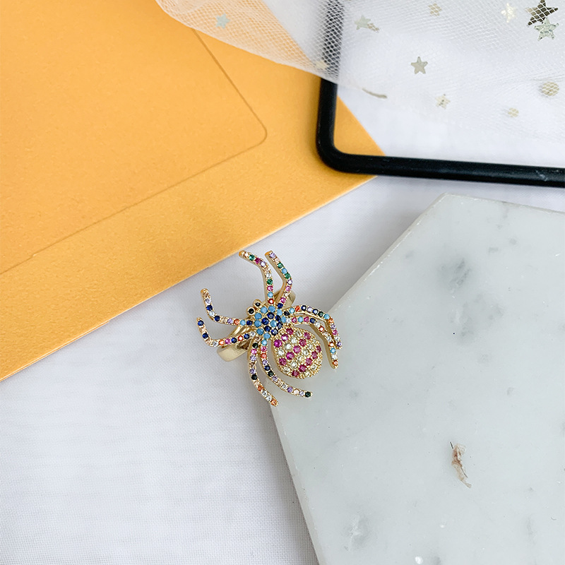 Copper Cartoon Spider Ring With Zircon Inlay Cute Animal Jewelry For Travel Souvenir Gift For Index Finger Accessory