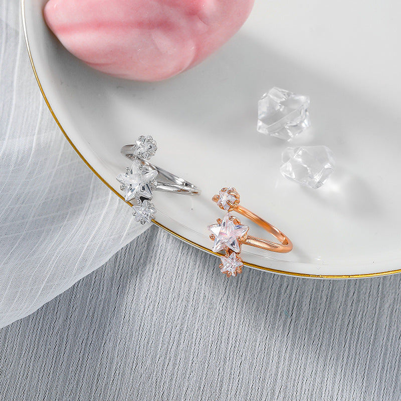 Adjustable Gold Plated Star Ring With Gems Inlay Alloy Fashion Jewelry Gift For Women And Teens Elegant Styles Gleaming