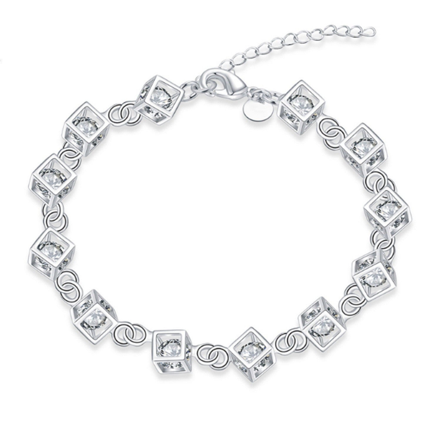 Womens Electroplated Silver Copper Bracelet With Checkered Zircon White Stones European Style Gleaming Gift Now
